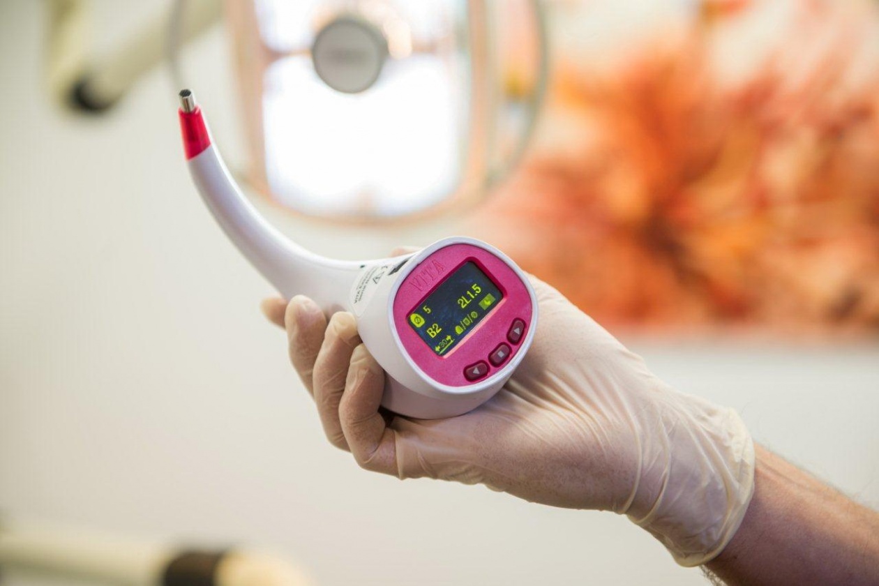 Zur individuellen Bestimmung der Zahnfarbe am Patienten verwenden die Zahntechnikerinnen und Zahntechniker der Dental Labor Wießner GmbH in Eisenach unter anderem das hochpräzises digitale Farbbestimmungsgerät „Vita Easyshade Advance 4.0“, welches besonders bei schwierigen Tageslichtverhältnissen zum Einsatz kommt.